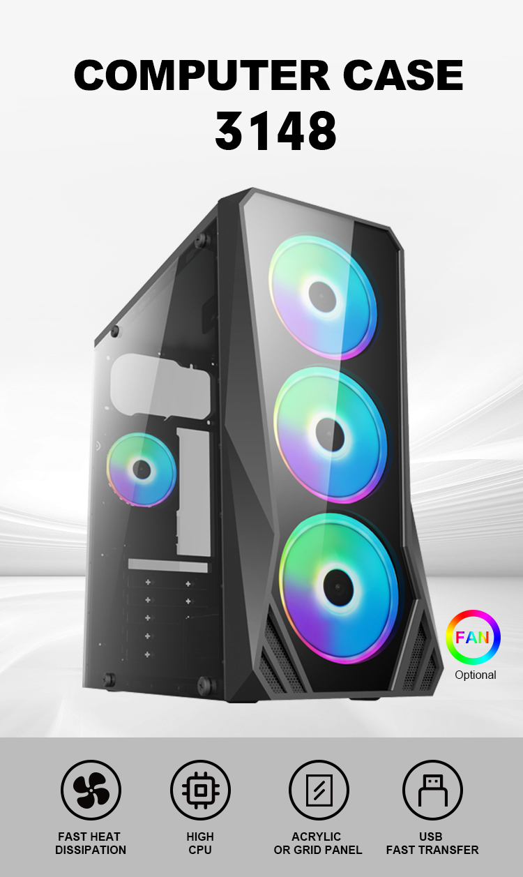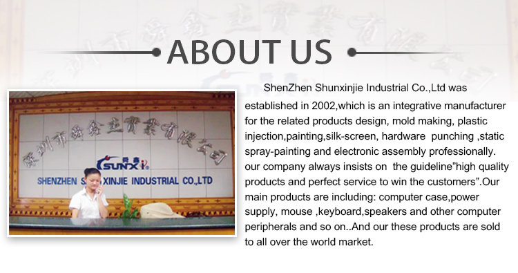 Sunxi mainly focusing on design and manufacture PC Cases and Power Supplies, keyboards, mouses and speakers. With the max capacity of production 300,000 pieces per month, computer case has 14 series with different styles and sizes for sale.