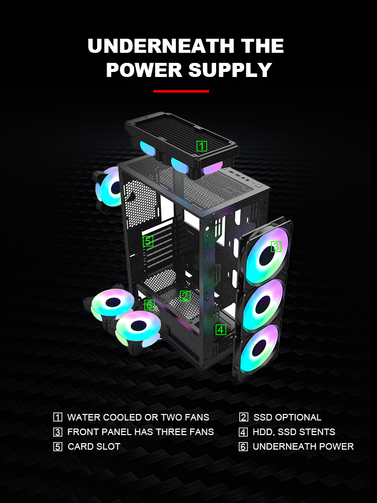 | Cooler Fan Support | front panel 3*120mm top 2*120mm rear 1*120mm bottom2*120mm |
