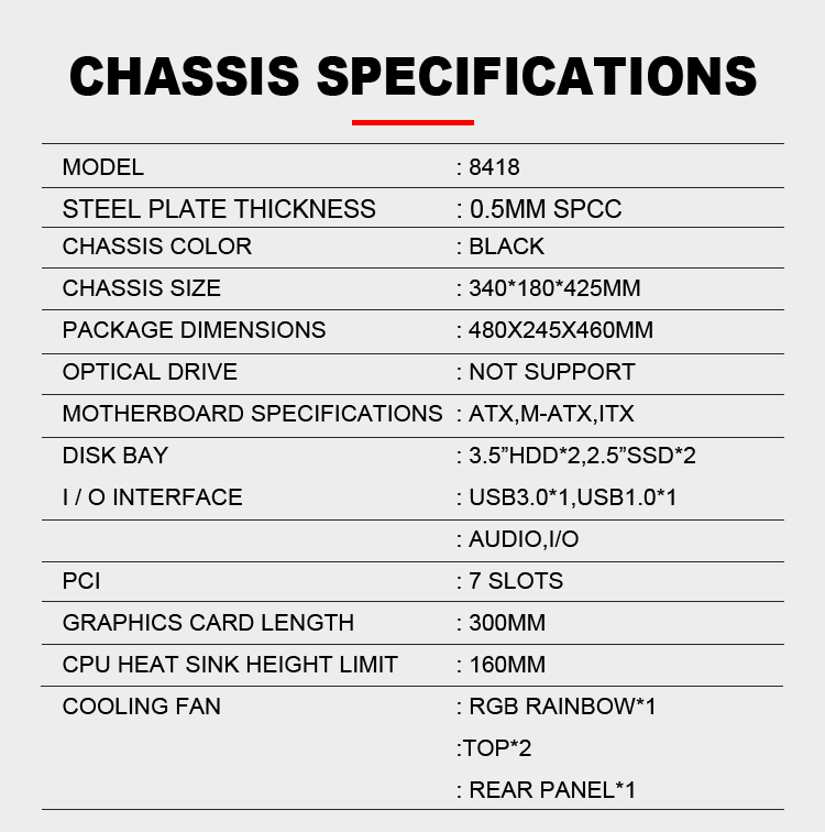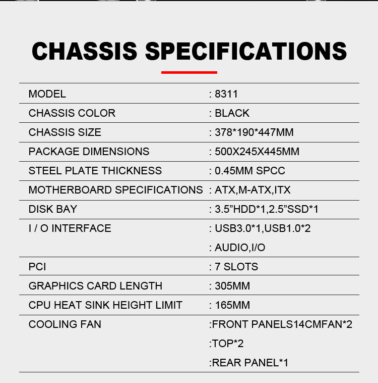 | USB I/O | 3.0*1+ 1.0*2+HD.AUDIO |