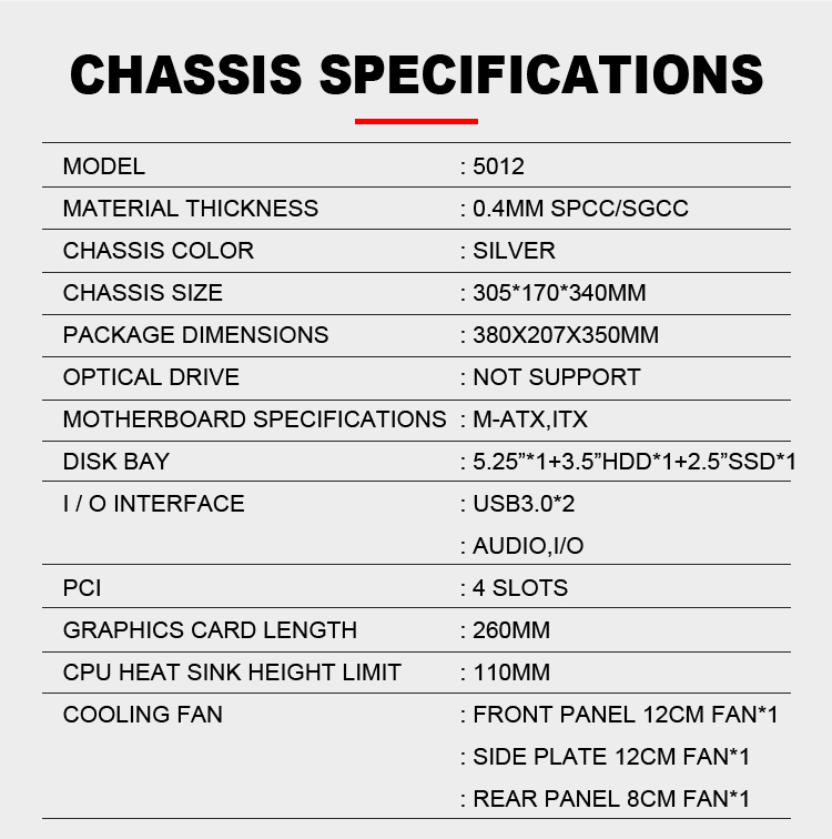 | Motherboard Support | Micro-ATX/MINI ATX |
