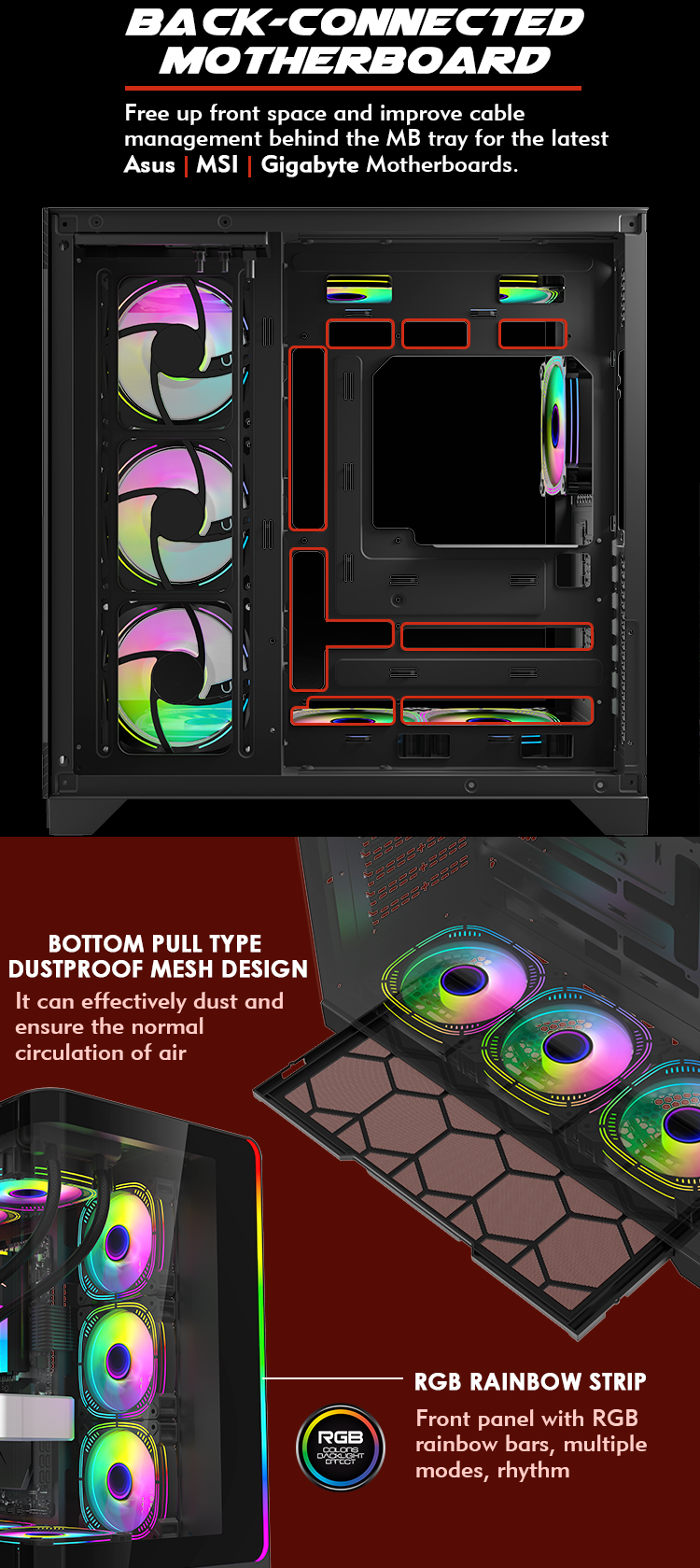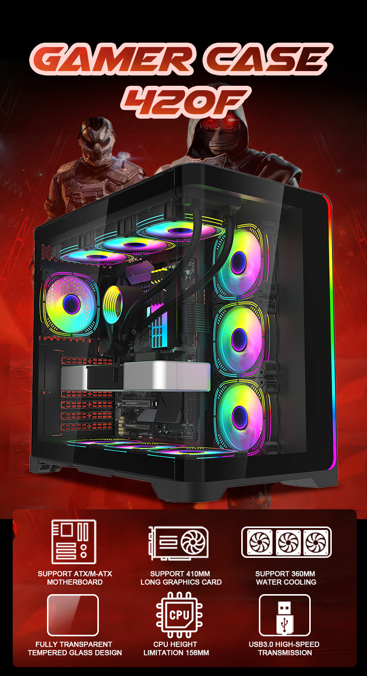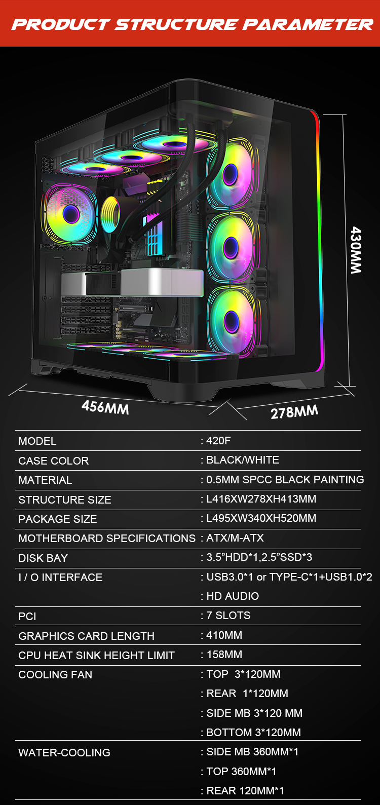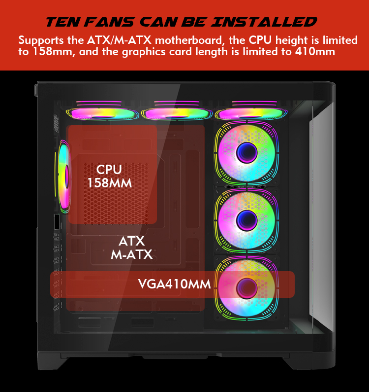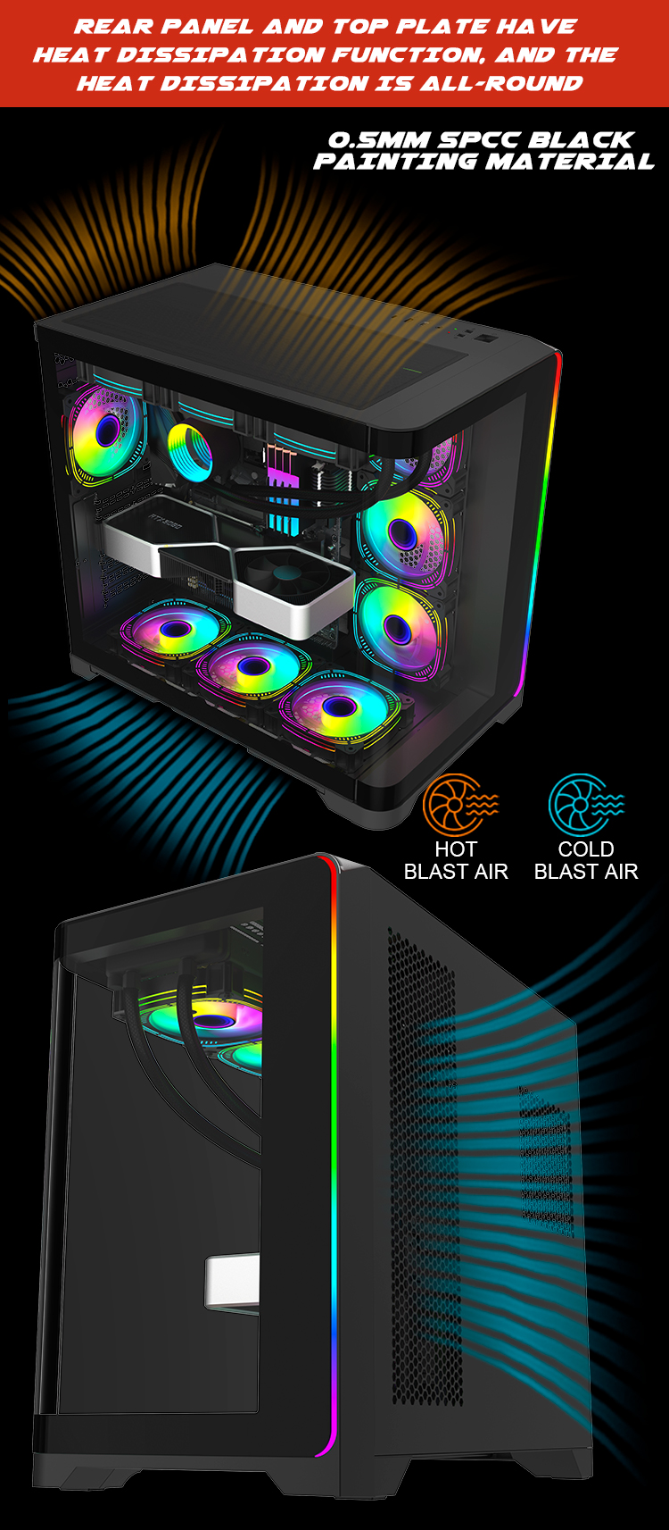 | Cooler Fan Support | front panel 3*120mm top 2*120mm rear 1*120mm |