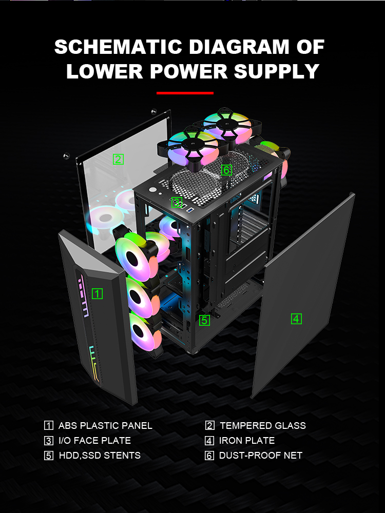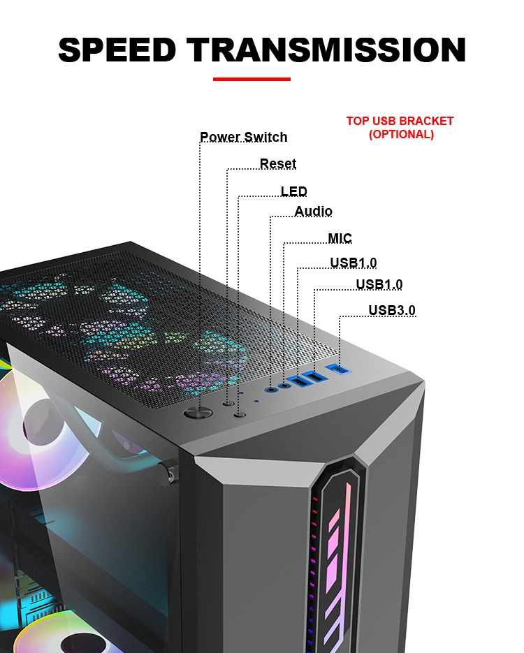 | Cooler Fan Support | RGB Rainbow top 2*120mm Power support 2*120mm rear 1*120mm |