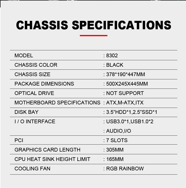 | USB I/O | 3.0*1+ 1.0*2+HD.AUDIO |