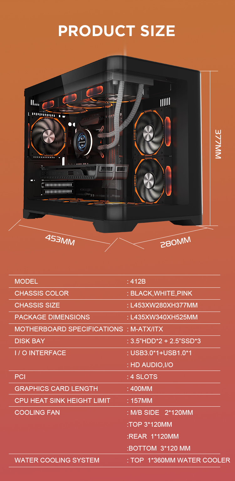 | Size with front panel and legs(L*W*H) | 453*280*377 mm |