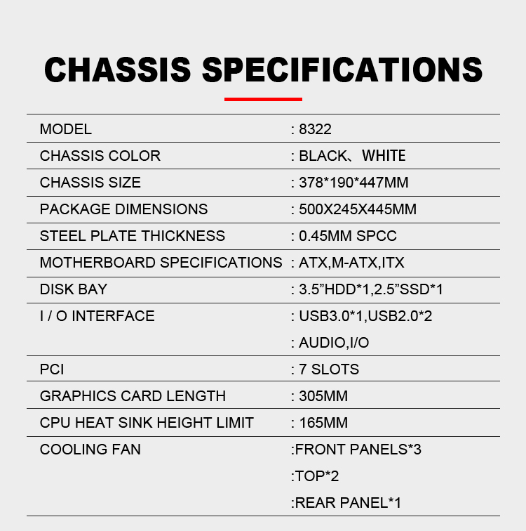 | USB I/O | 3.0*1+ 1.0*2+HD.AUDIO |