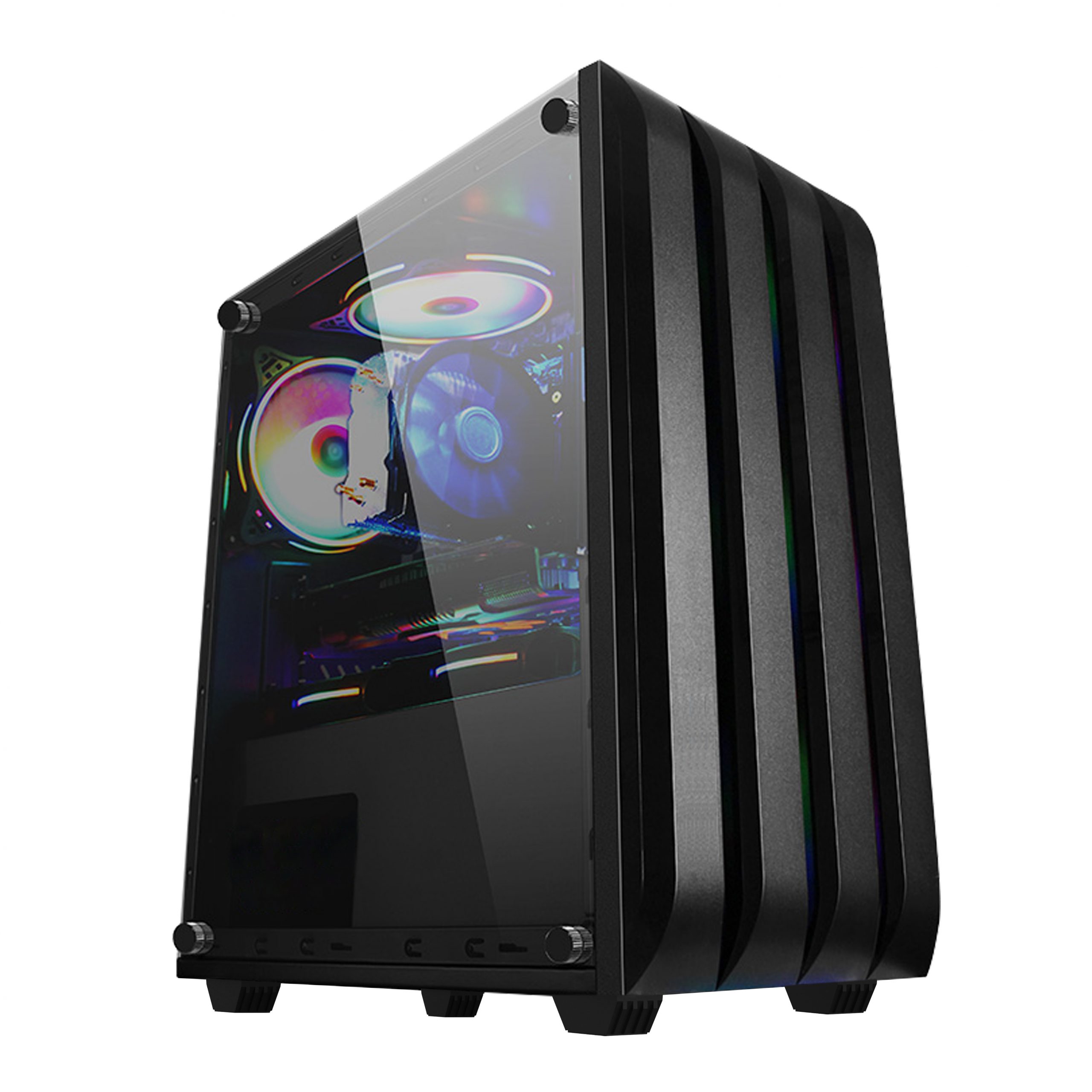 atx with fan colourful tempered glass horizontal cooled cpu cabinet dustproof gaming pc computer case 1902