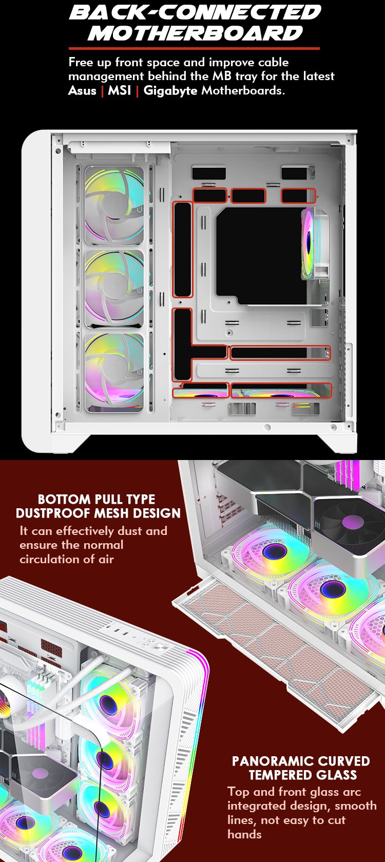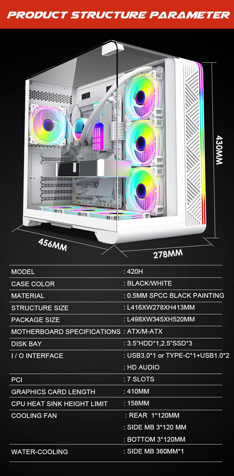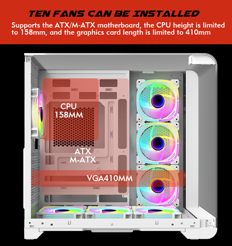 | Cooler Fan Support | M/B Side 3*120mm Top 3*120mm Rear 1*120mm Bottom3*120mm |
