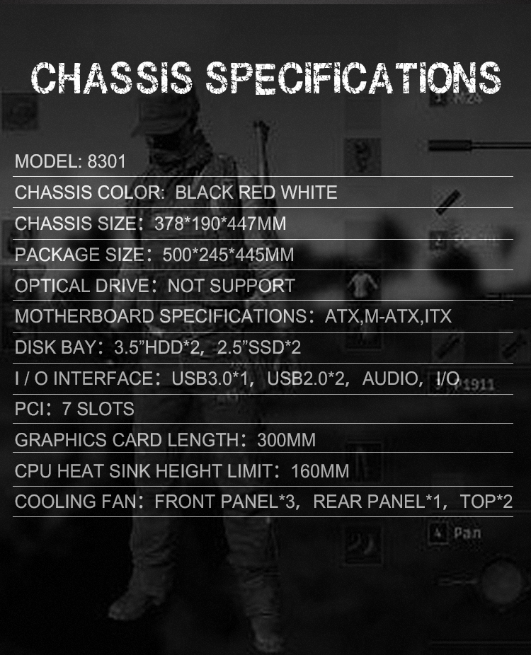 | USB I/O | 3.0*1+ 1.0*2+HD.AUDIO |