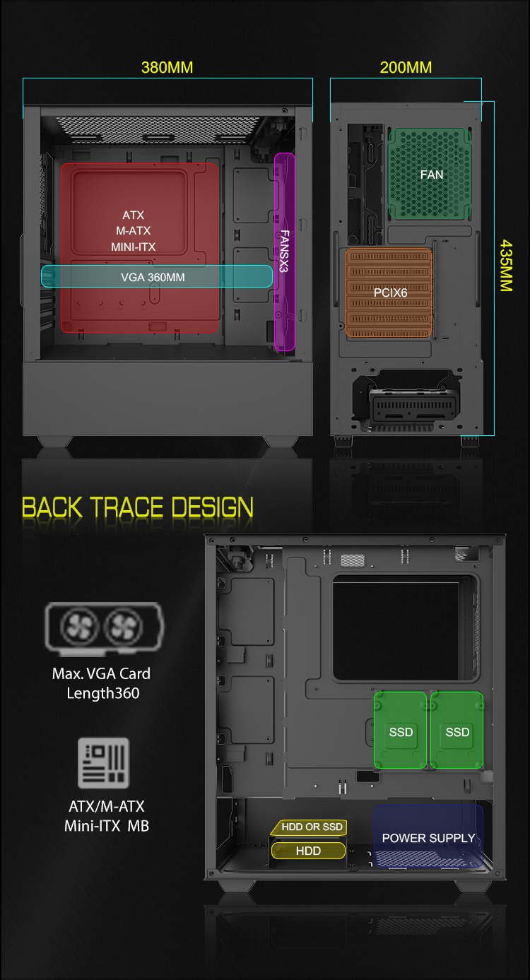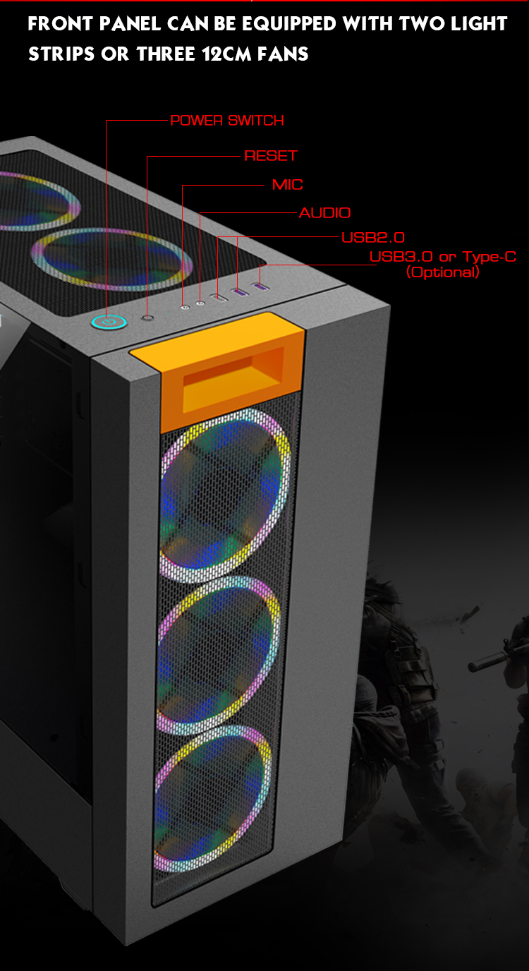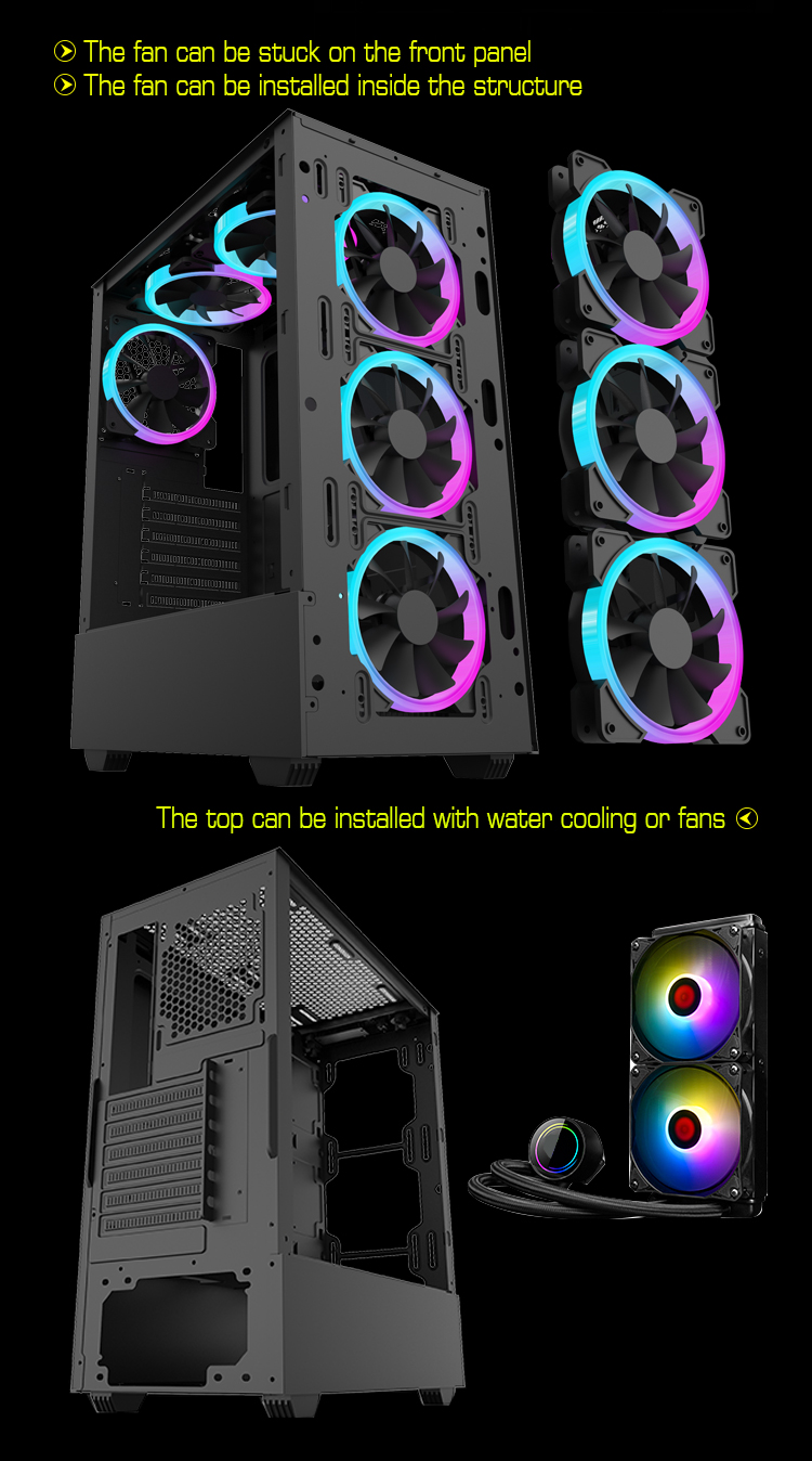 | Cooler Fan Support | top 2*120mm rear 1*120mm RGB Rainbow*2 |