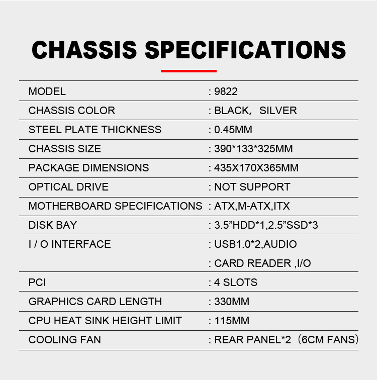 | Motherboard Support | M-ATX/ITX |