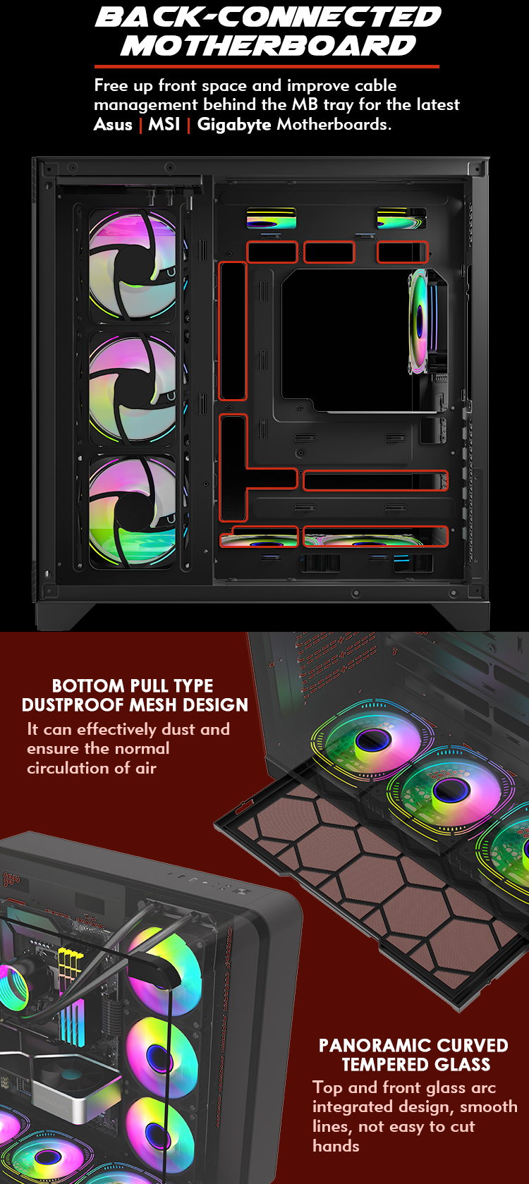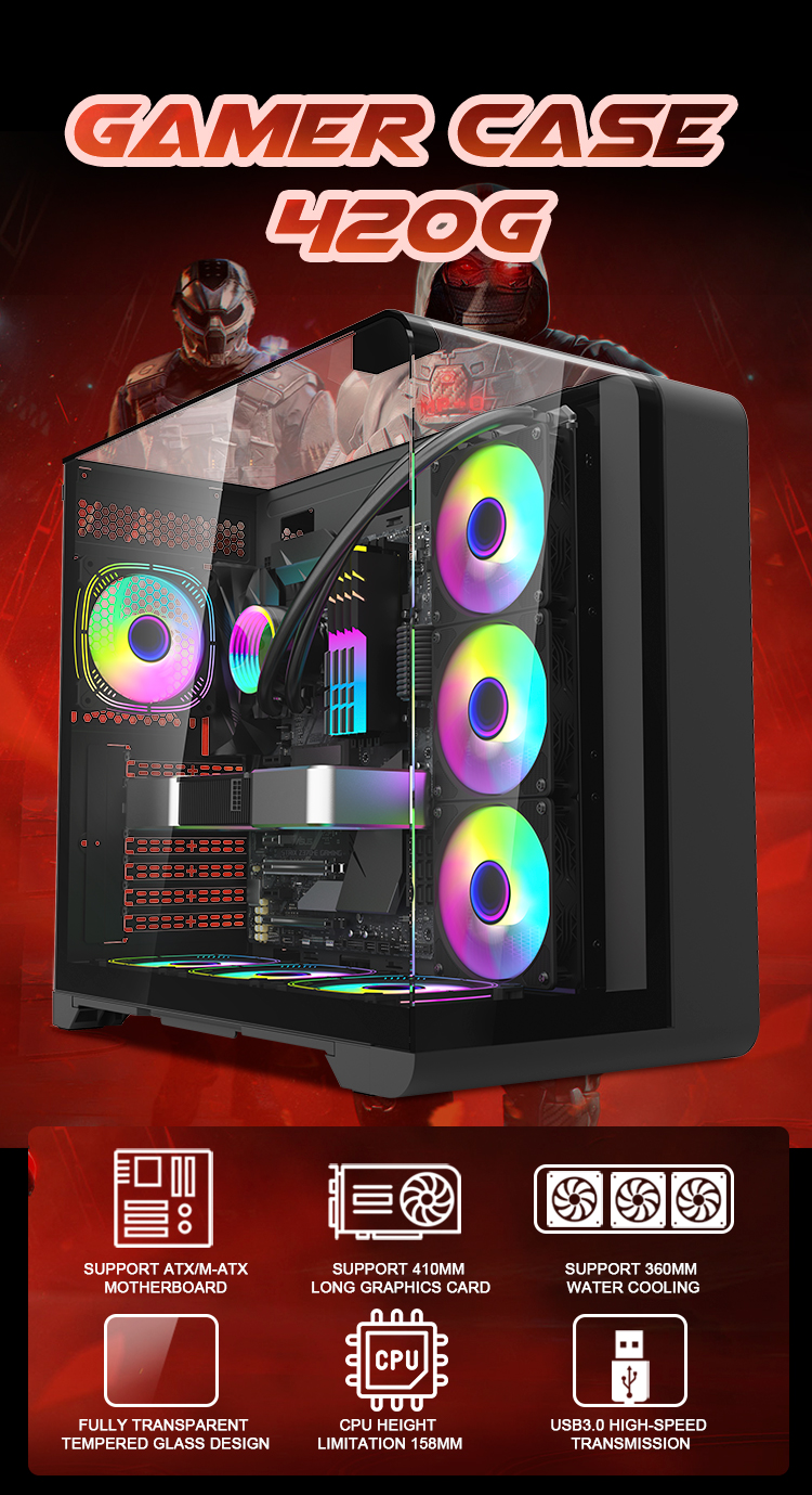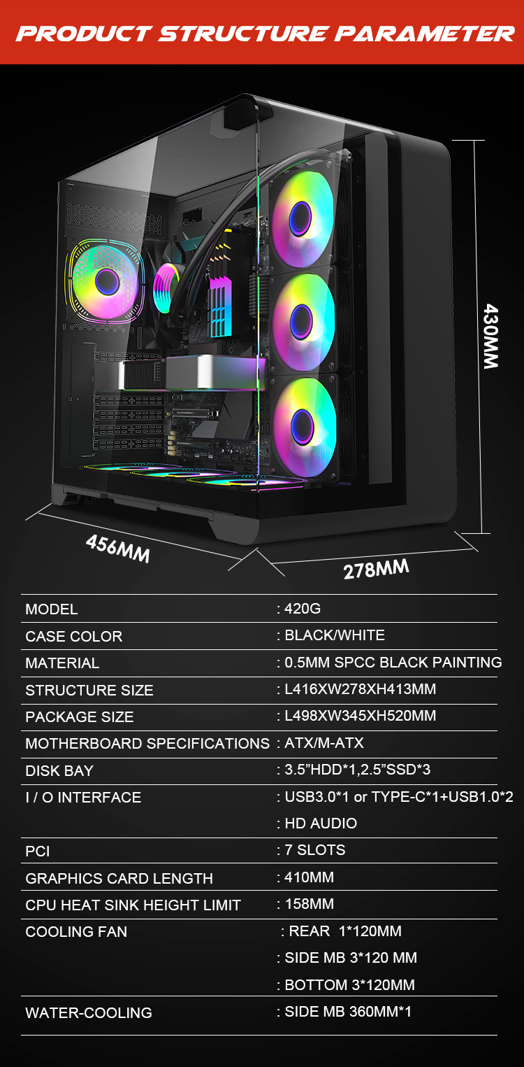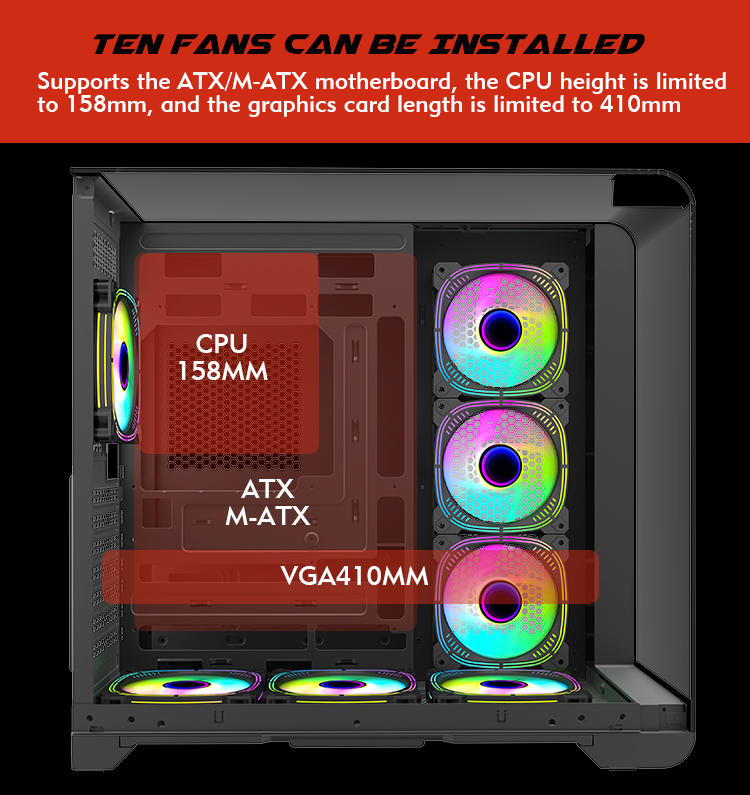| Cooler Fan Support | M/B Side 3*120mm Top 3*120mm Rear 1*120mm Bottom3*120mm |