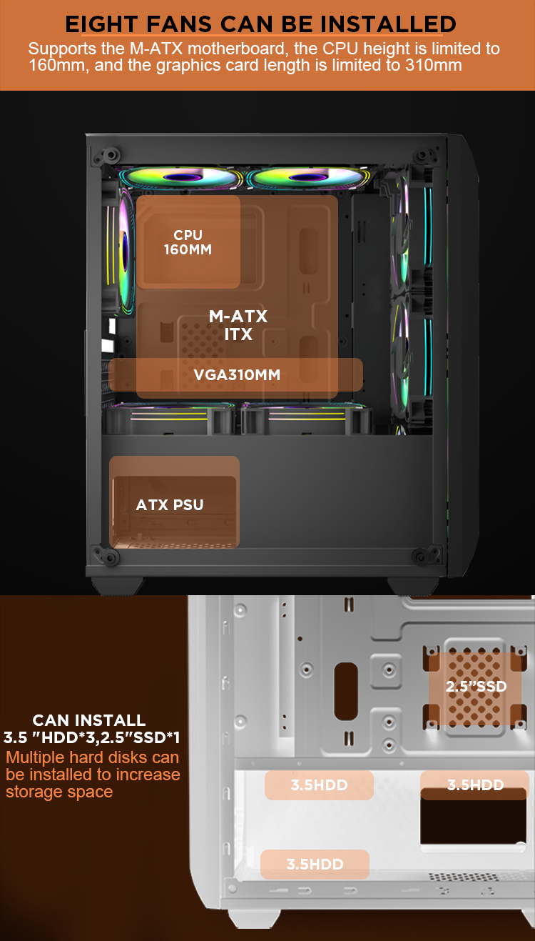Cooler Fan Support front panel 3*120mm top 2*120mm rear 1*120mm