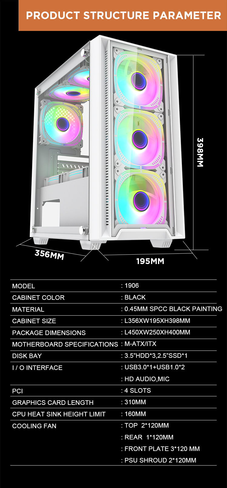 game anime custom diy acrylic panel with lcd fan temperature display dustproof glass cpu case gaming pc casing 1906tempered glass