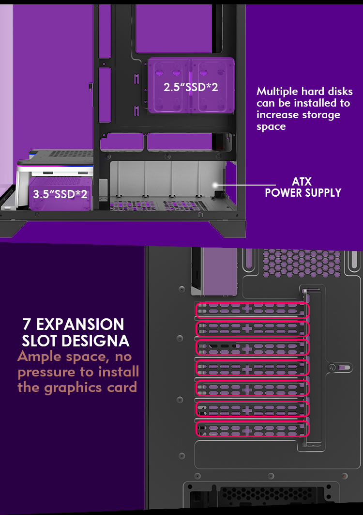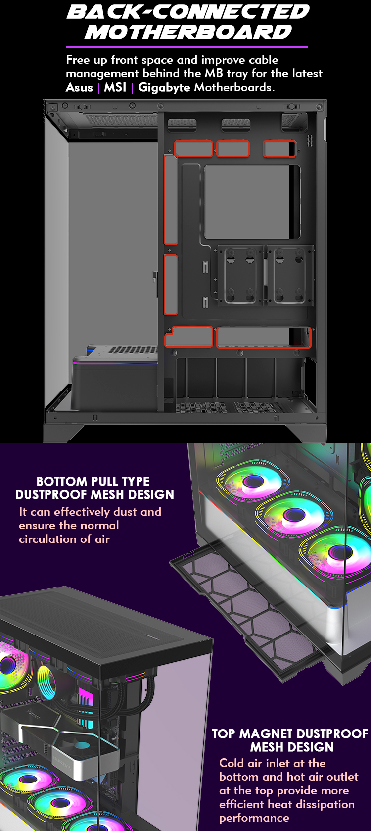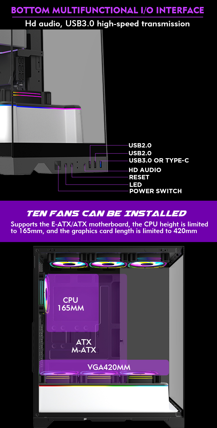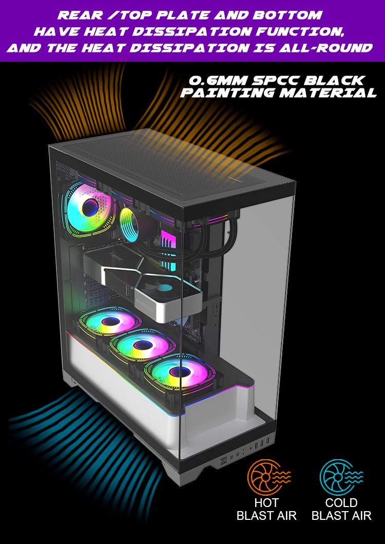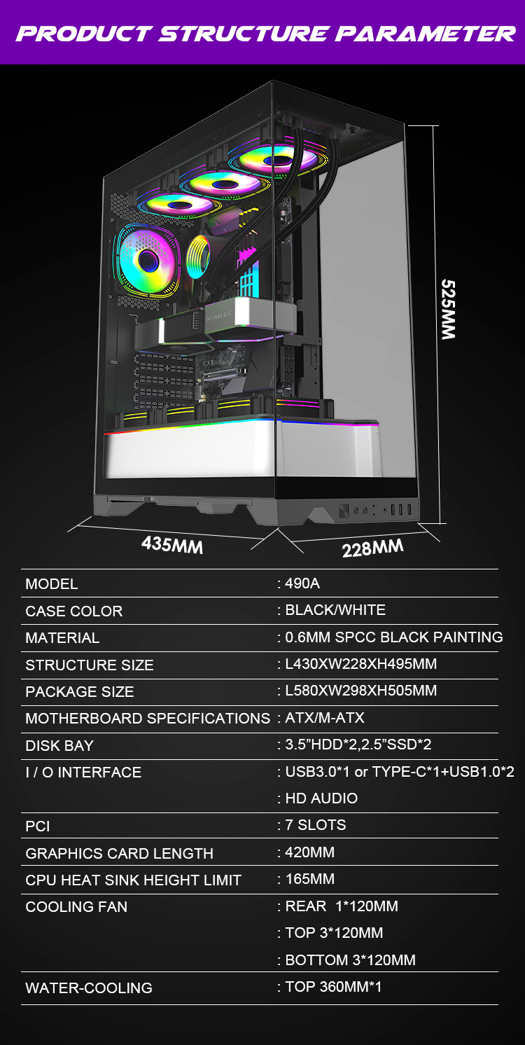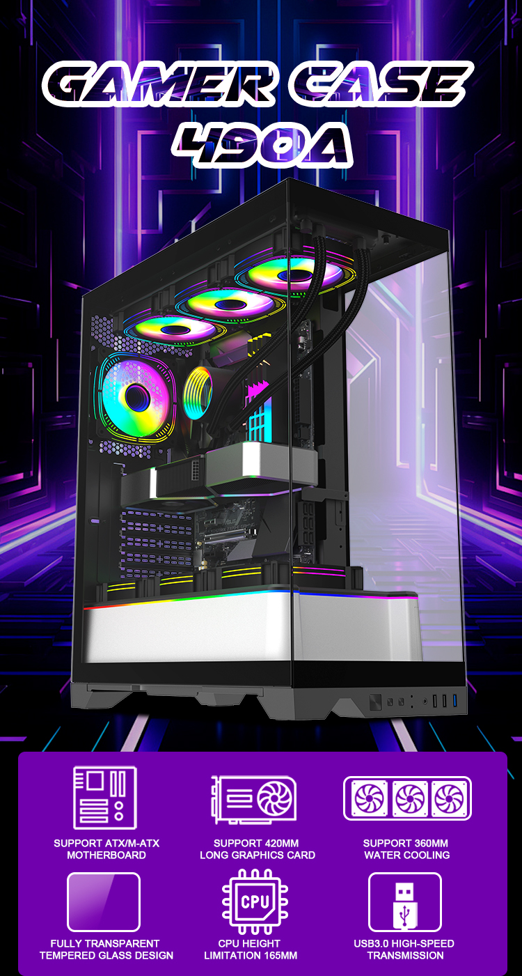 New Design E-ATX RGB Gaming Desktop Panoramic Tempered Glass Computer Case & Tower Tempered Glass Full PC Towers 490A