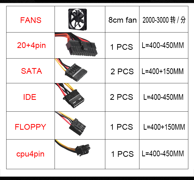 | DC OUTPUT | +12V +5V +3.3V -12V +5Vsb |