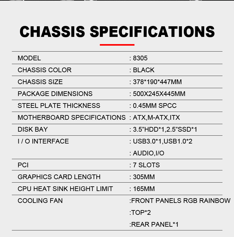 | USB I/O | 3.0*1+ 1.0*2+HD.AUDIO |