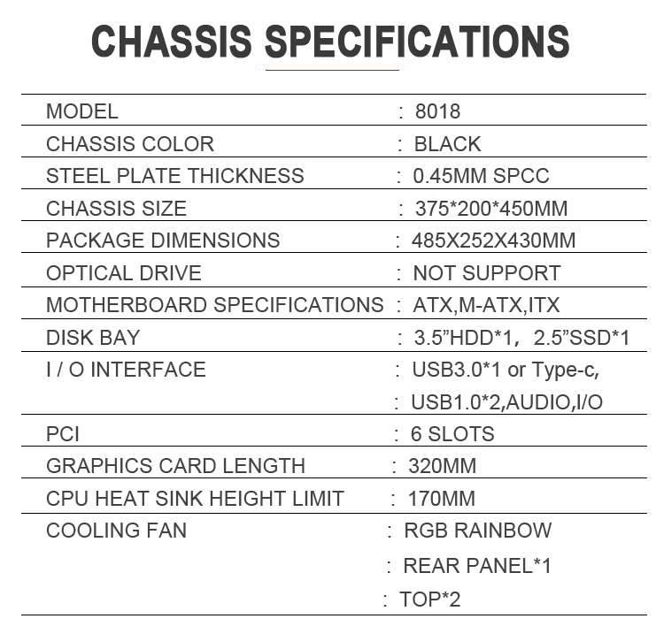 | USB I/O | 3.0*1+ 1.0*2+HD.AUDIO |