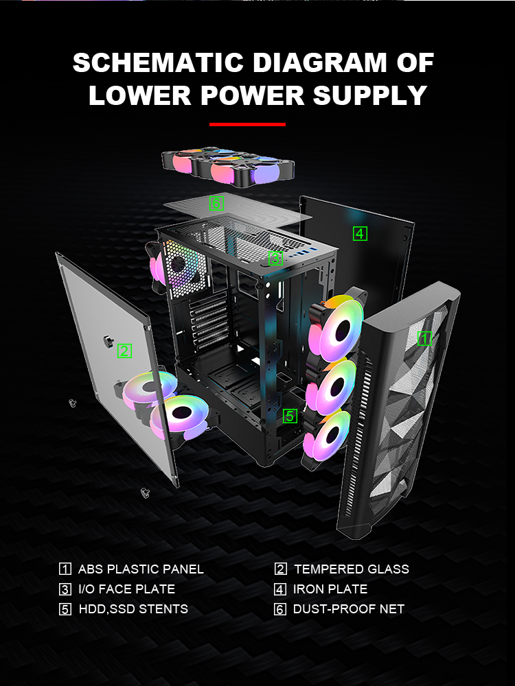 | Cooler Fan Support | front panel 3*120mm top 2*120mm Power support 2*120mm rear 1*120mm |