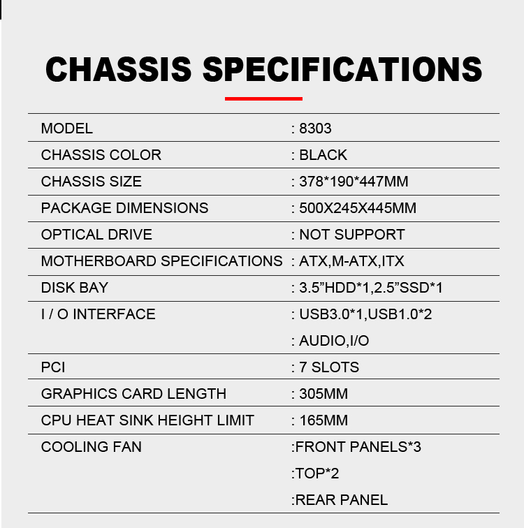 | USB I/O | 3.0*1+ 1.0*2+HD.AUDIO |