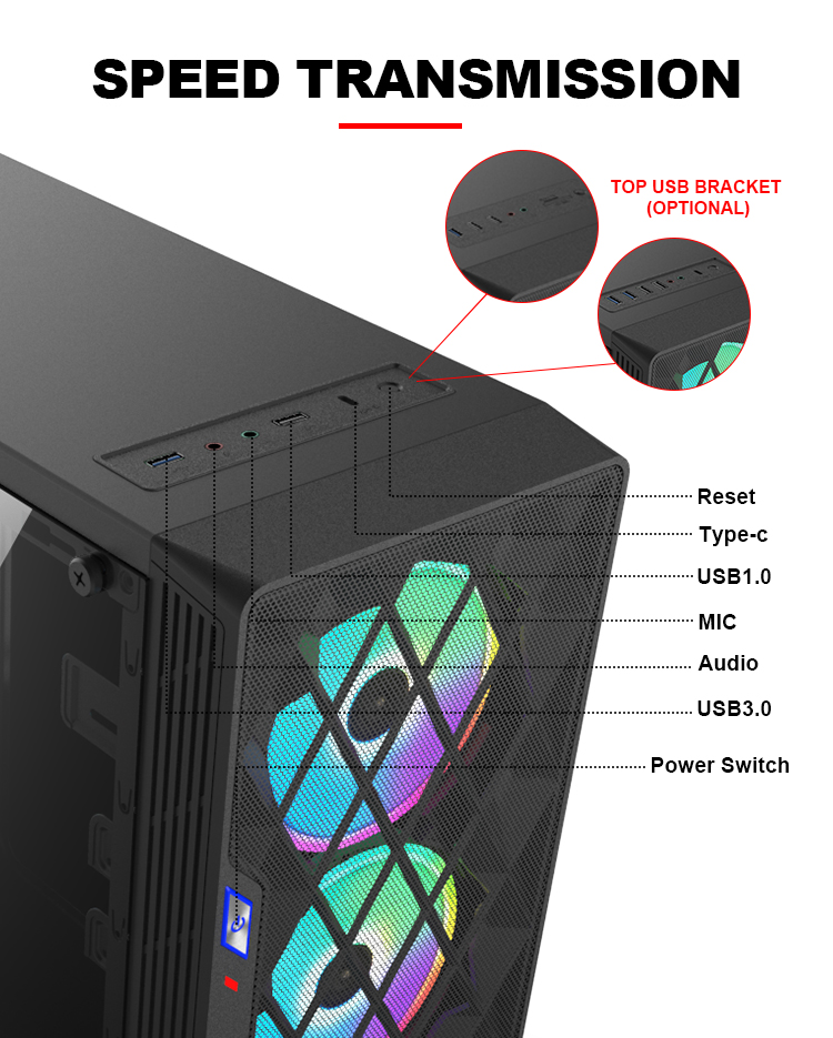 ShunXinJie mainly focusing on design and manufacture PC Cases and Power Supplies, keyboards, mouses and speakers. With the max capacity of production 300,000 pieces per month, computer case has 14 series with different styles and sizes for sale.
