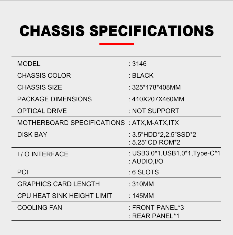 | USB I/O | 3.0*1+ 1.0*2+HD.AUDIO |