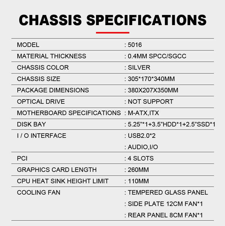 | Motherboard Support | Micro-ATX/MINI ATX |