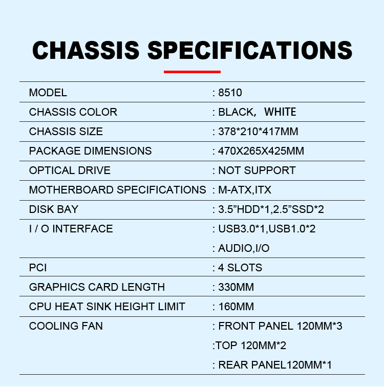 | USB I/O | 3.0*1+ 1.0*2+HD.AUDIO |