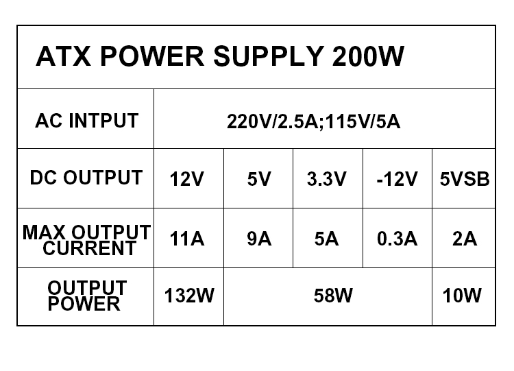 | Model | atx 200w |